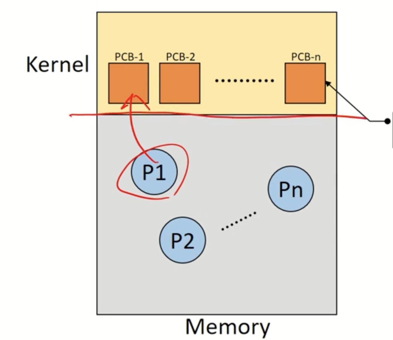 - 프로세스 생성 시 PCB도 생성되어 관리됨