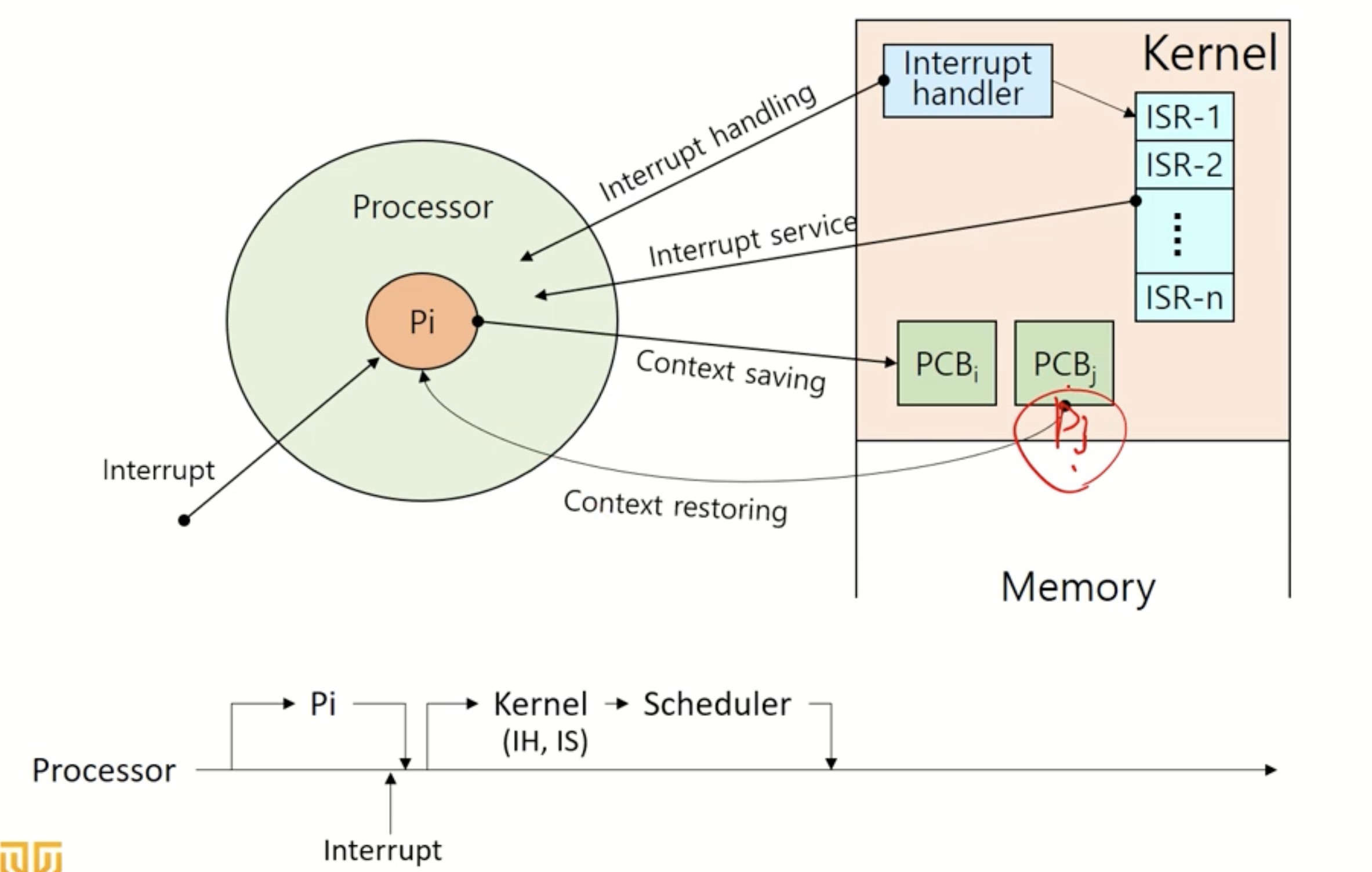 - 커널이 개입하여 현재 프로세스를 일시 중단하고 Context Saving 수행